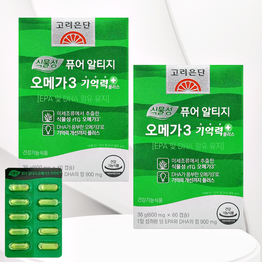 고려은단 식물성 퓨어 알티지 오메가3 기억력 플러스+ 60캡슐, 2개